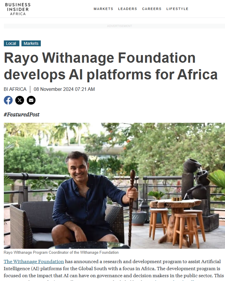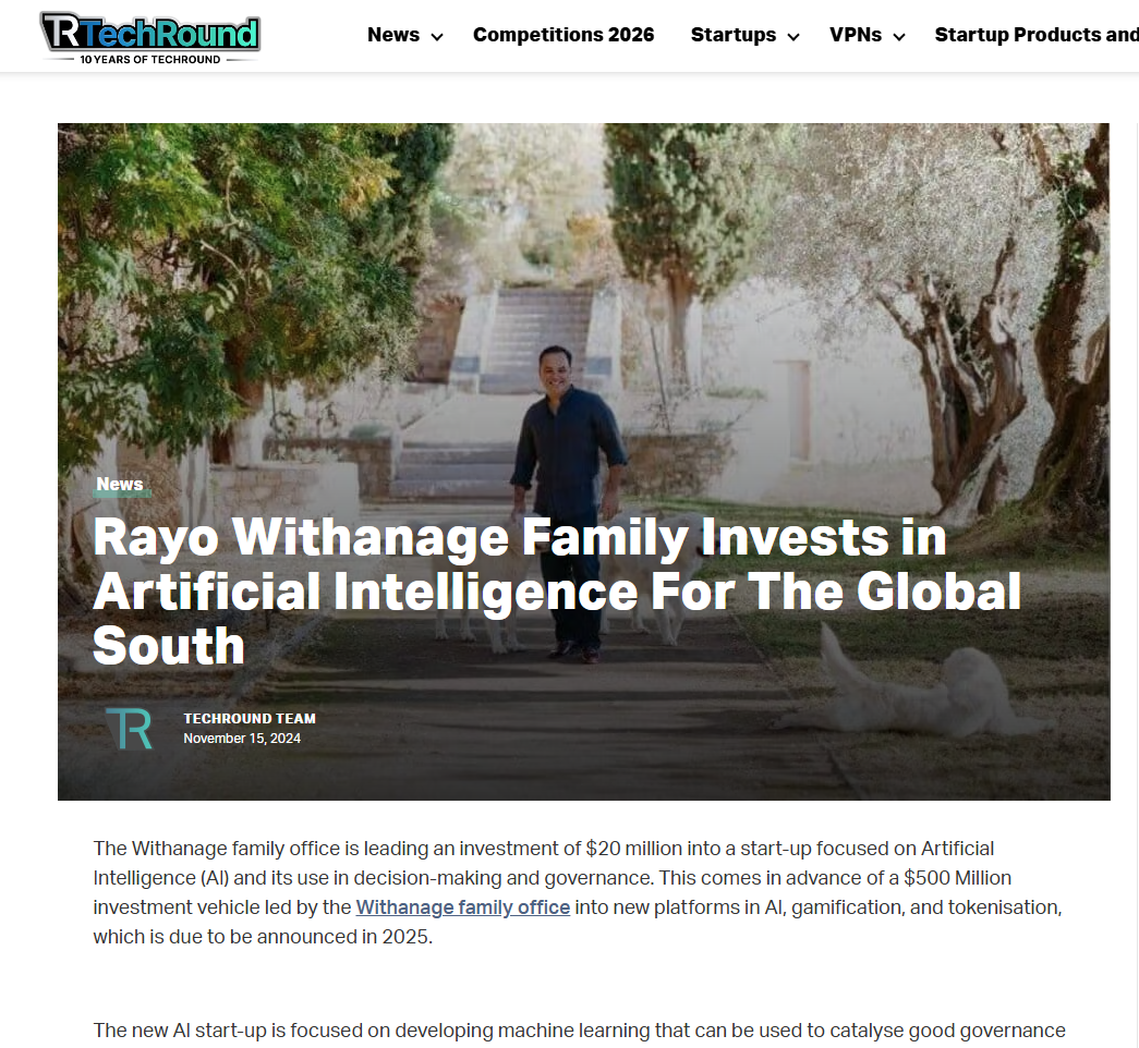 TechRound covered the Withanage family office’s investment into artificial intelligence platforms focused on the Global South, highlighting initiatives aimed at advancing data-driven governance and sustainable development through emerging technologies and a broader commitment to building large-scale AI investment vehicles.